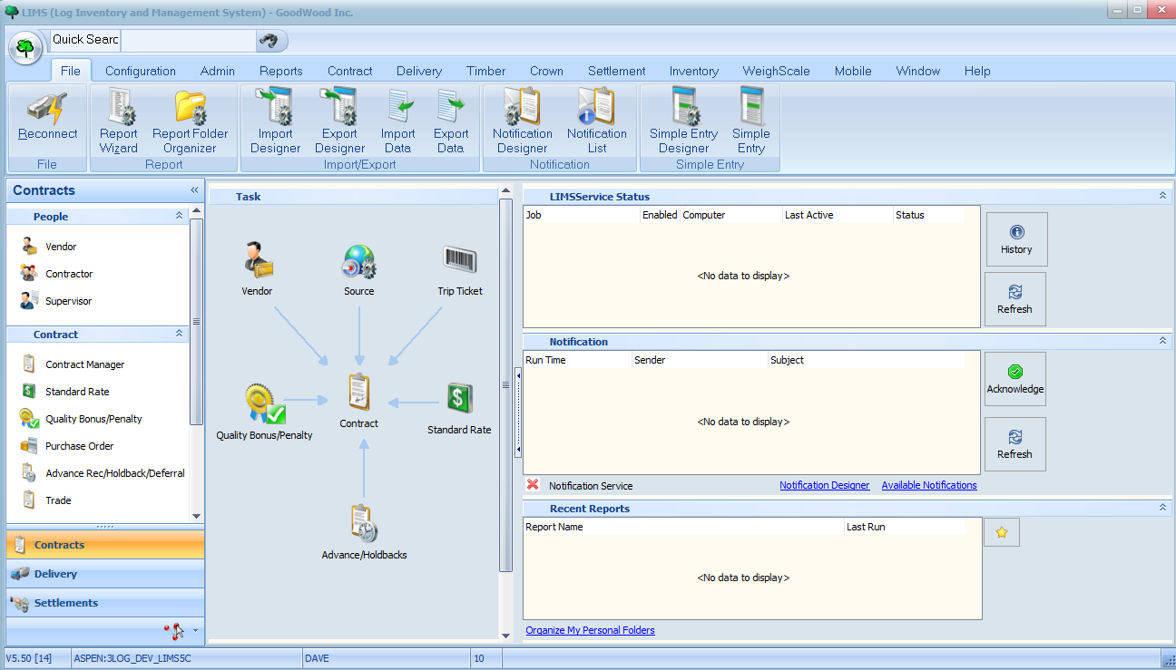 Lastly, click the OK button to log in. You should now see the LIMS home screen as follows: