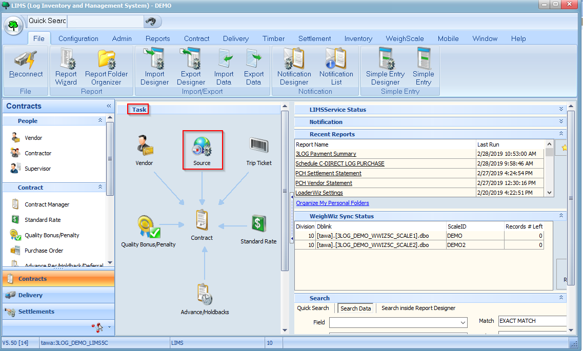 LIMS supports several types of sources such as lump sum, pay as cut, gatewood, etc. In this section we will create an OSP source (i.e. Outside/Gatewood source). Since gatewood is delivered to the yard by the seller, it is the simplest source type to conceptualize and set up.